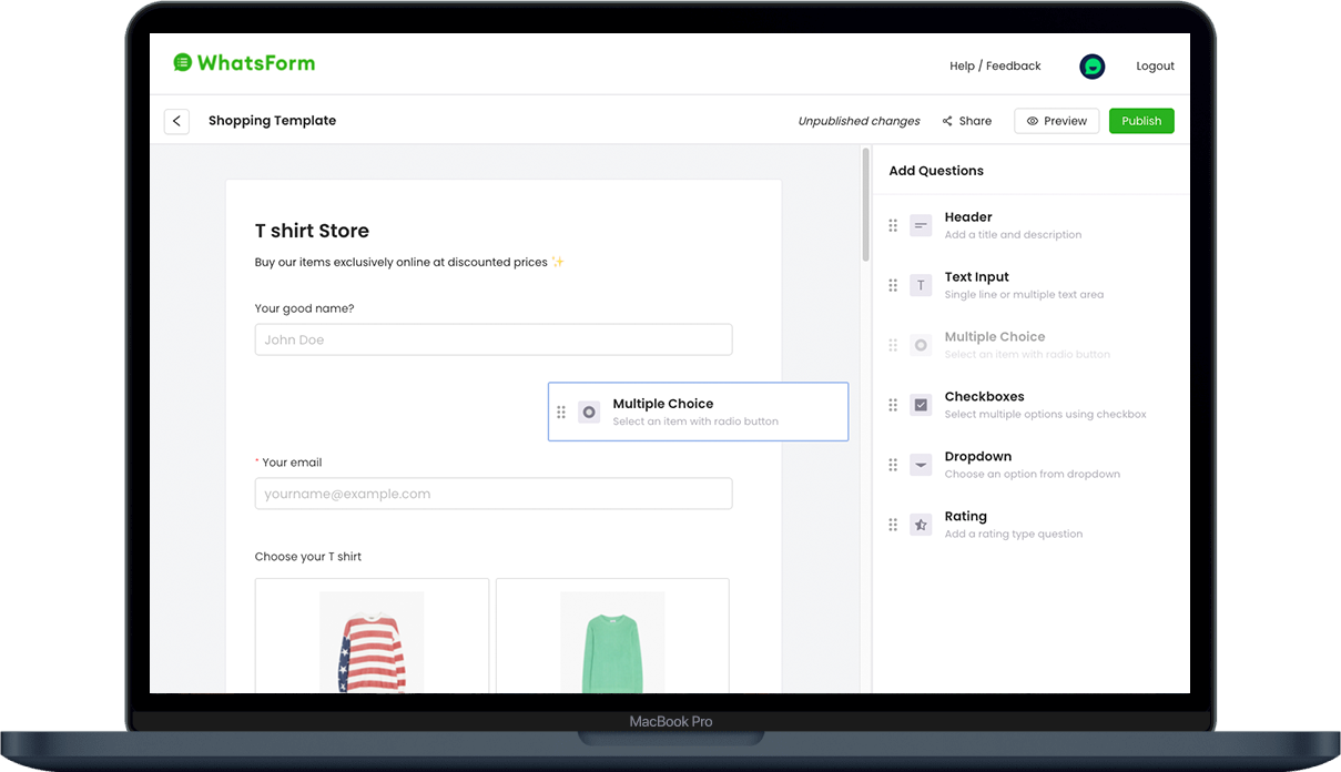 Simply signup using a Google account and create WhatsForm from any template. It's easier than you imagine.